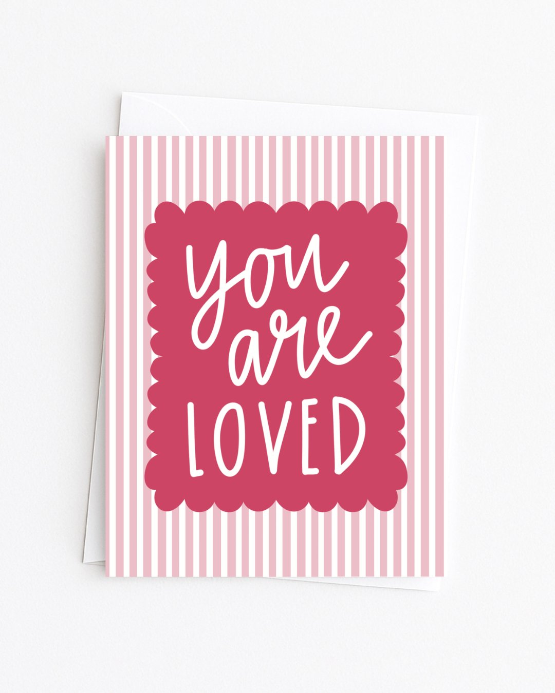 Remind someone they are loved with this pink striped card!